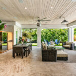 Outside, a covered lanai with roll-down screens and shutters provides space for al fresco dining and lounging, year-round. A summer kitchen with a built-in grill is perfect for preparing family favorites and watching a movie on the outdoor projector and roll-down screen after dinner. Or you can take a dip in the adjacent pool or spa.
