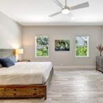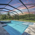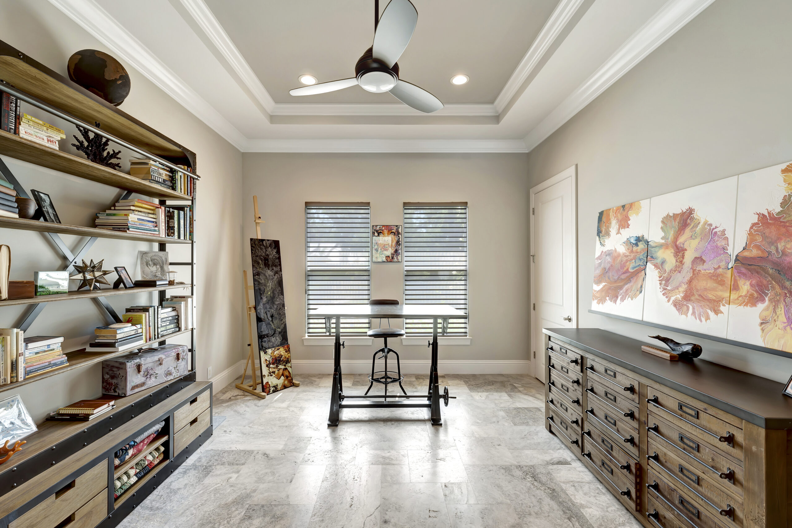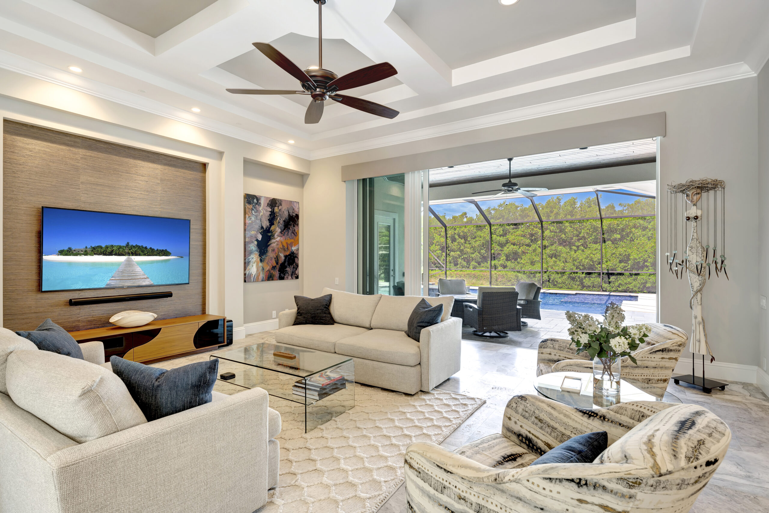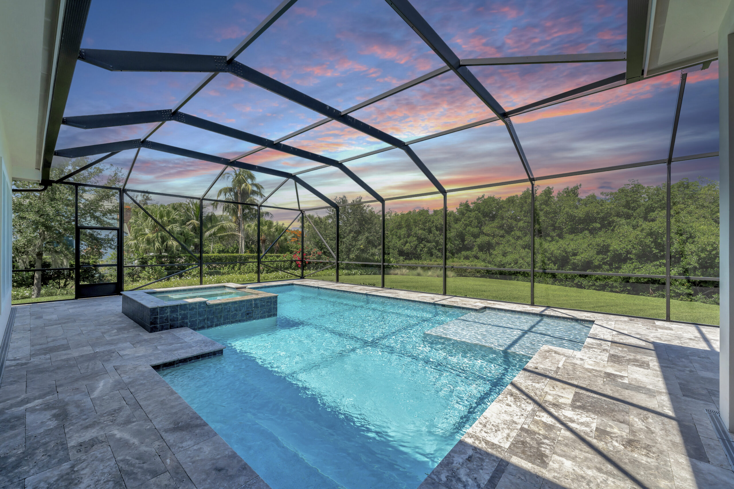The backyard is a serene, private oasis. The heated, saltwater pool and spa are surrounded by a parklike setting with ample green space leading down to a creek-like tributary that runs along the preservation area, with the historic Jungle Trail and the Indian River Lagoon beyond. One of the owner’s favorite things about the location is the abundance of wildlife that visit, including bobcats, otters and shorebirds.