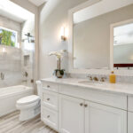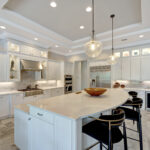 The substantial quartz, multi-level island begs to be covered with drinks and appetizers for guests while you prepare dinner. It’s also a perfect setup for a family breakfast. The nearby walk-in pantry provides overflow supplies when entertaining and features a dedicated coffee bar, so your kitchen countertops are kept uncluttered and gleaming.