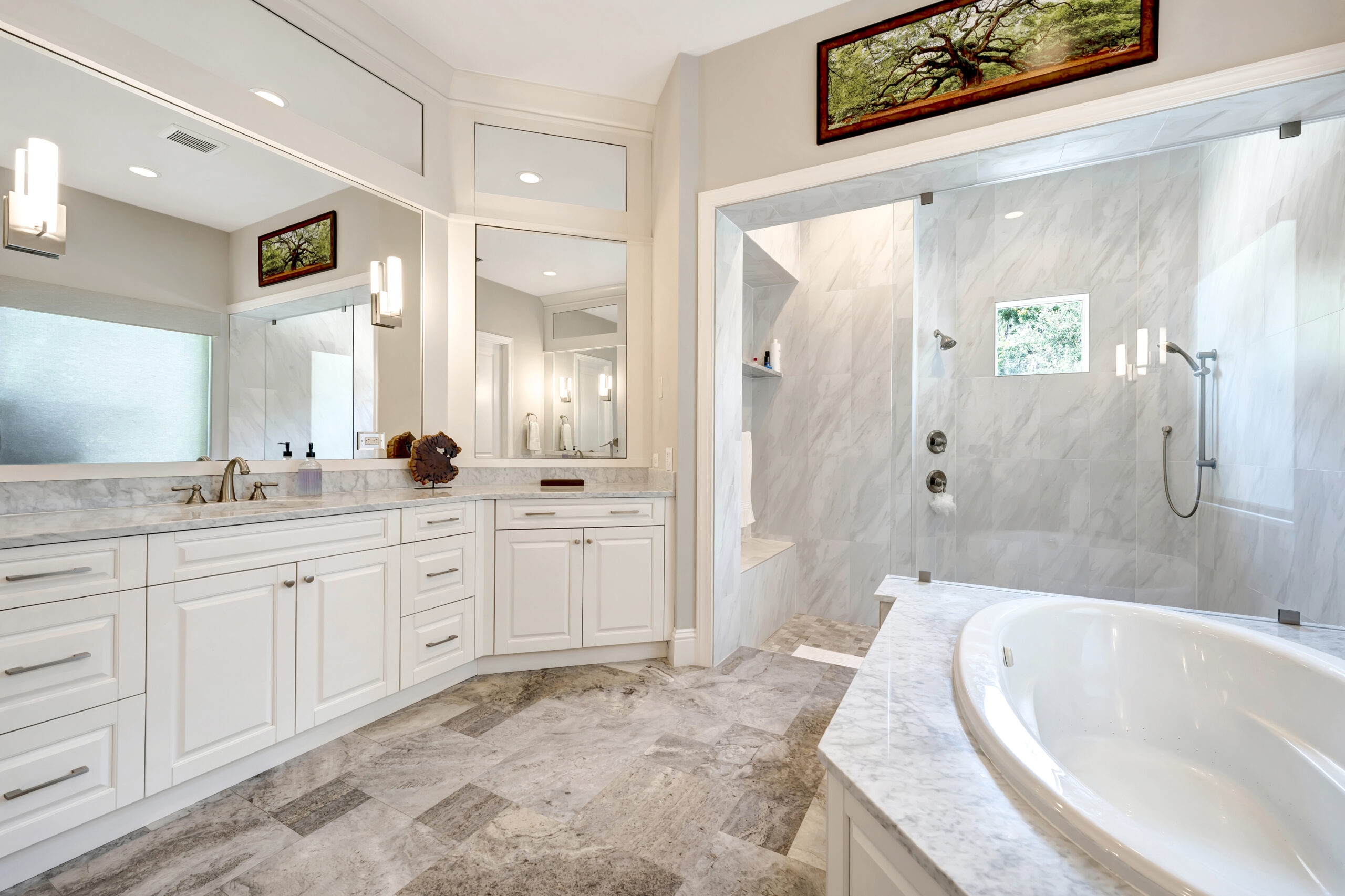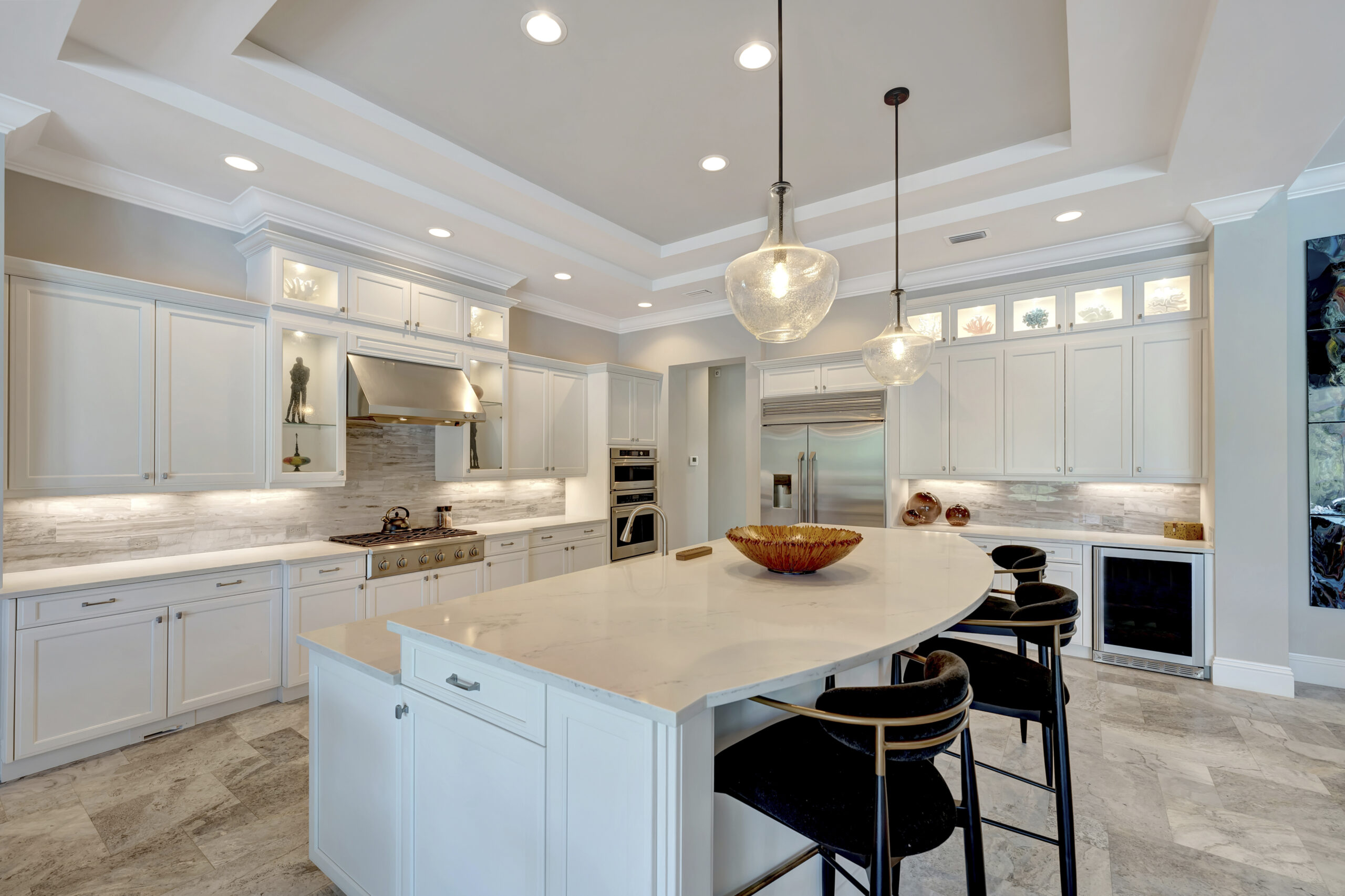 Additional features: Den; Monogram appliances; travertine and wood look tile; quartz counters; jetted tub; central vacuum; drink fridge; summer kitchen; three-car garage; screened patio; outdoor shower; tankless water heaters; impact windows and doors; standing seam roof; and generator.