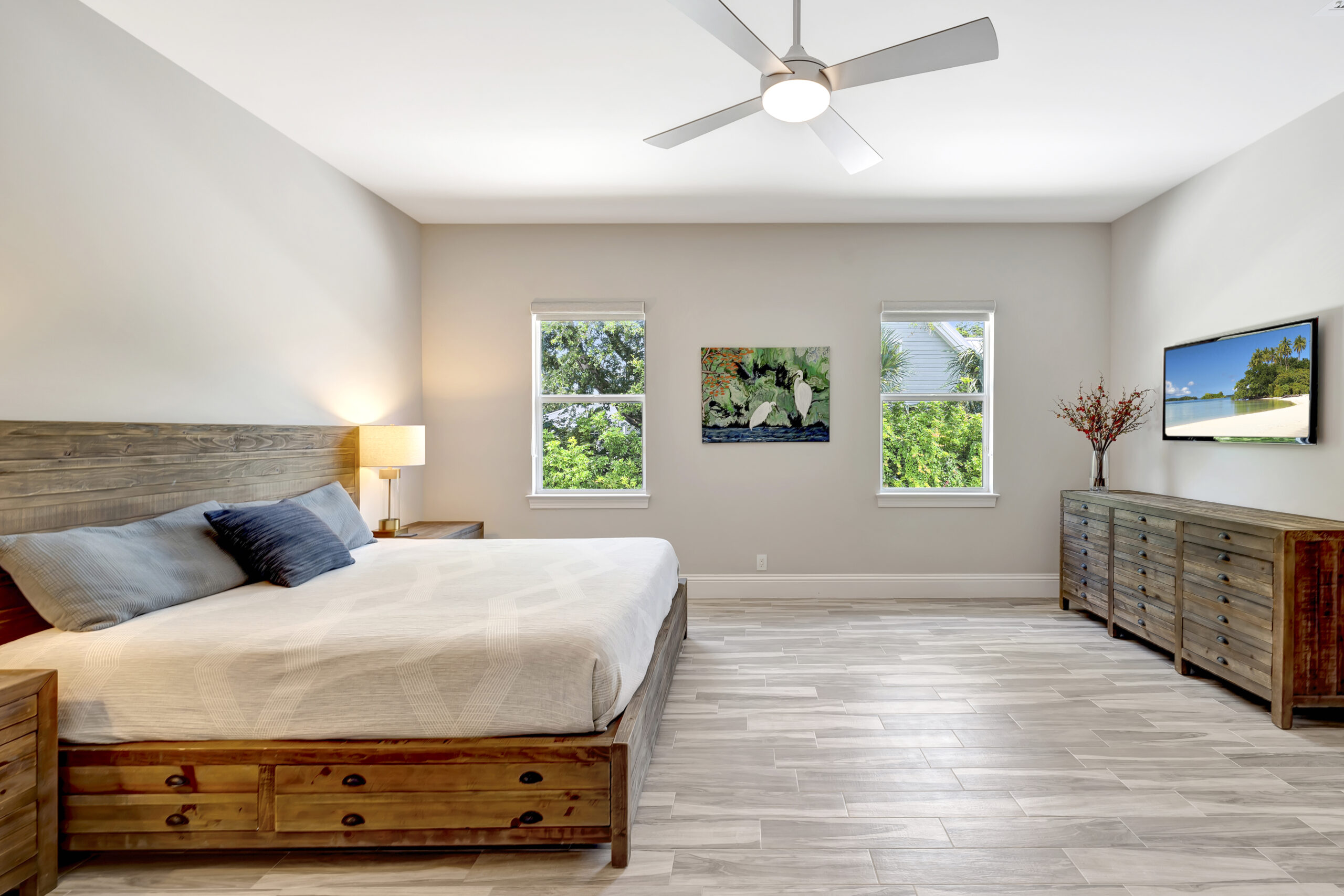 Electric blinds cover the sliding-glass doors. When raising them to take in the view, it’s almost like raising the curtains for a Broadway show with a new cast of characters each day. A backdrop of vibrant red blooms on the Royal Poinciana tree provides a spectacular pop of color against a deep green wall of mangroves with puffy white clouds drifting across the ever-changing blues of clear and stormy skies.