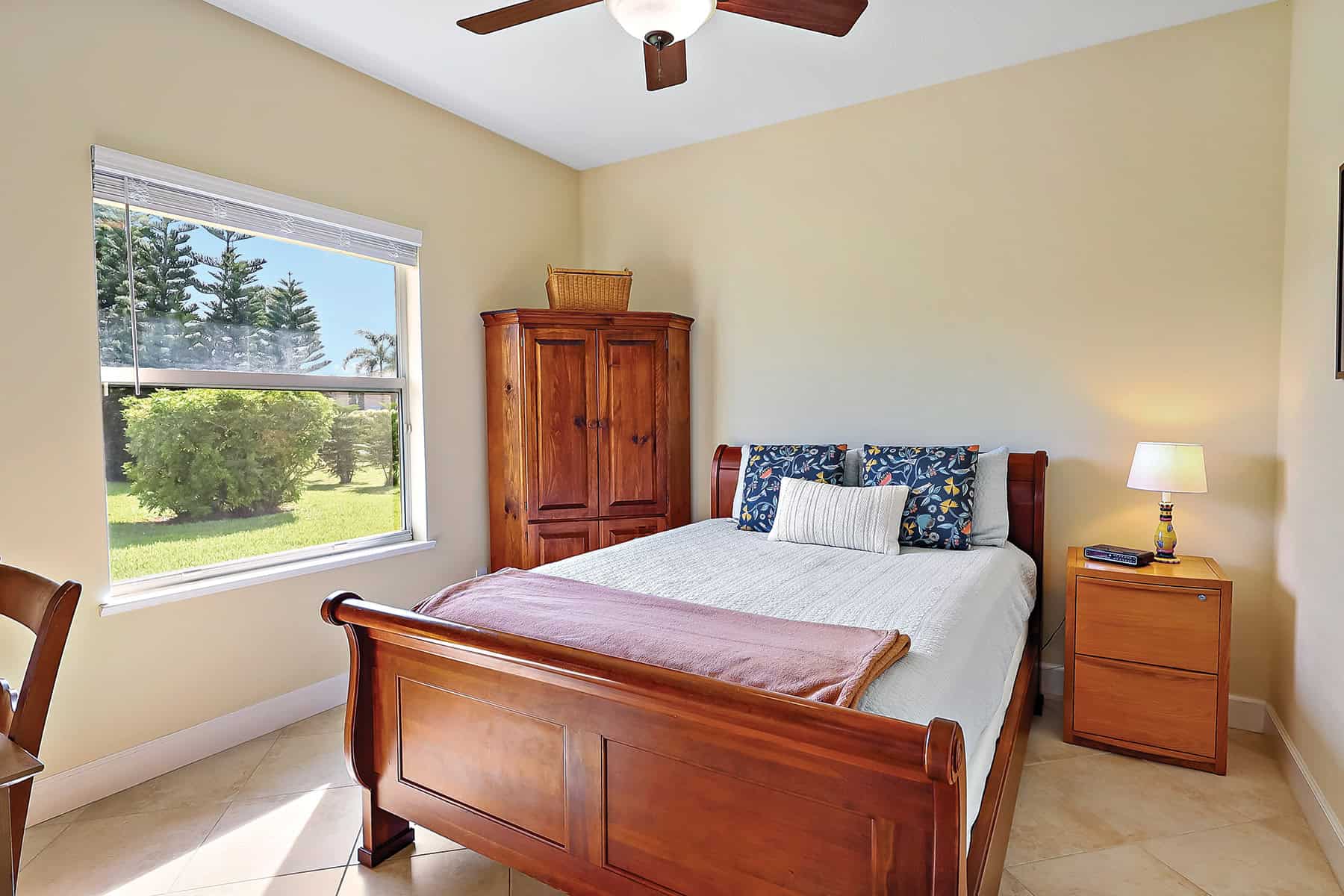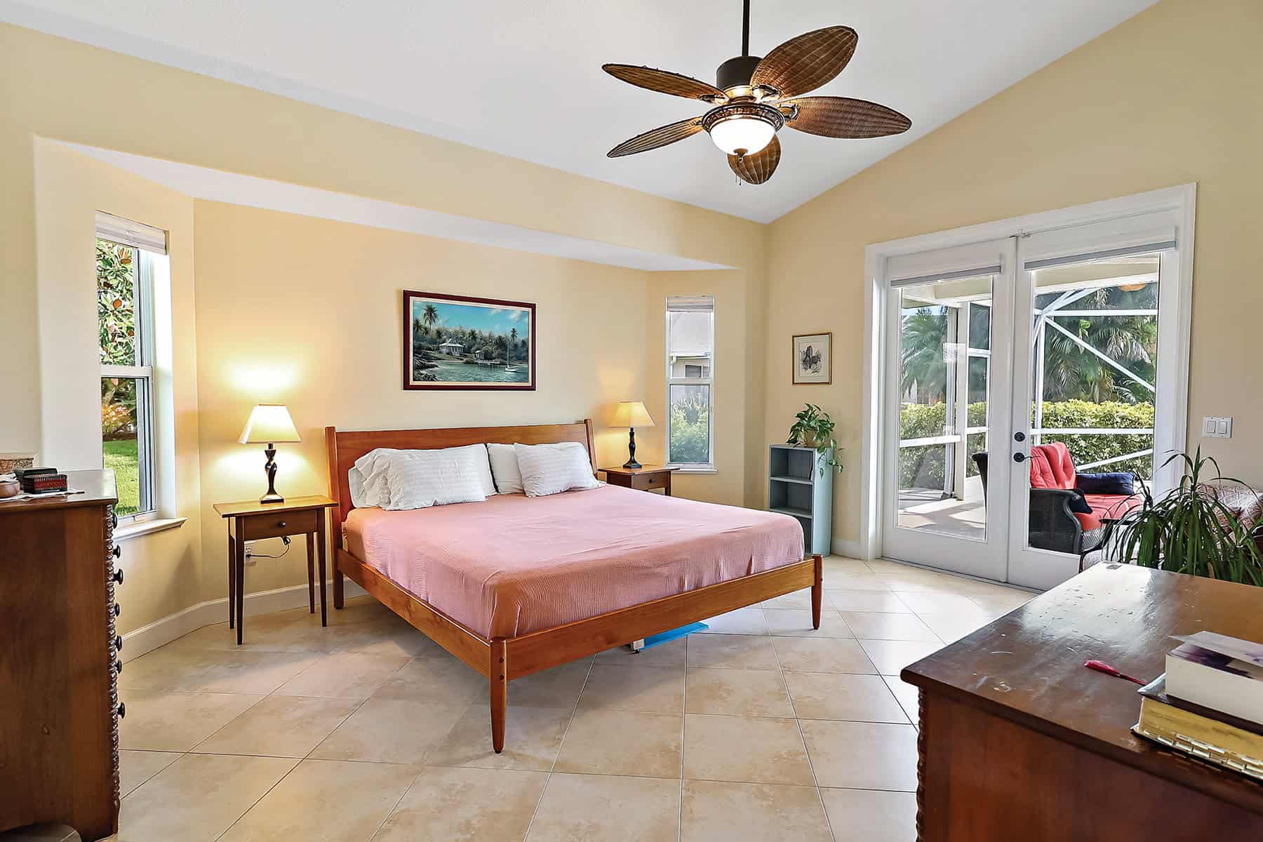 The third, at the back/northeast end, has its own bathroom, with a single basin sink, walk-in shower and door to the pool patio, enabling it to serve as a cabana bath as needed.