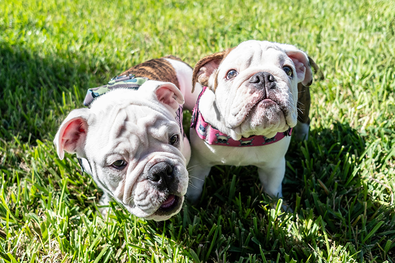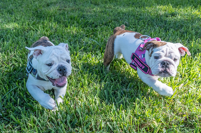 At only 15 weeks old, Ginny and Charlie Miller are probly the silliest, tumbliest, cuddliest, squishy-face-est English Bulldog siblings I’ve ever innerviewed, Paws Down. I mean, it took me about twice as long cuz I kept laffin’ at their off-the-charts adorable-ness, an my assistant kept laffin’ an givin’ em Nose Boops an liddle pats (which was No Help). Woof, was it fun, tho.