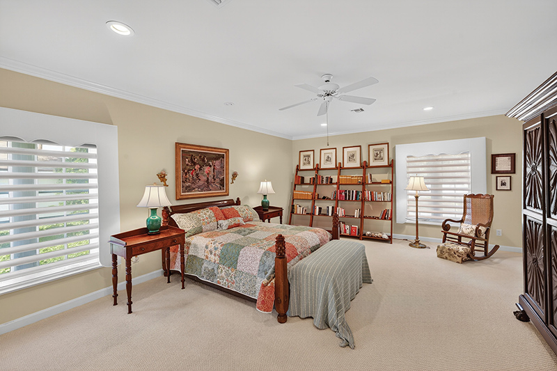 The split-plan layout ensures privacy for all in residence, with bedrooms in opposite corners of the home. The main gathering spaces are bright and airy, with generous ceiling heights in the living areas.