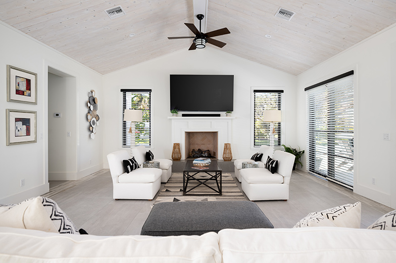 Remodeled by Roth Builders in 2021, the home balances classic midcentury modern appeal with a contemporary lifestyle. The renovation focuses on light, volume and flow, with vaulted ceilings that create an airy, expansive atmosphere without losing the home’s original charm.