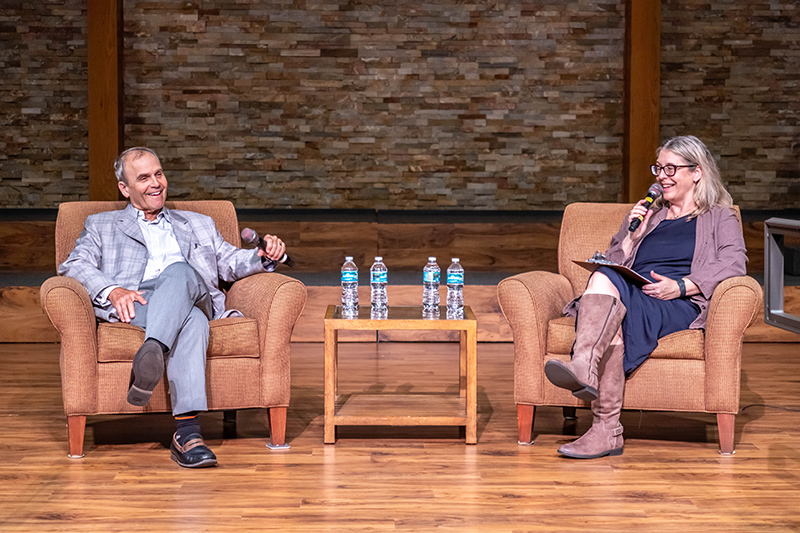 Turow was interrogated by Sara Wilson, LRJF executive director, who guided the author through a discussion spanning his books and their Hollywood adaptations, his dual career as a writer and attorney, and his concerns about the future of literature.
