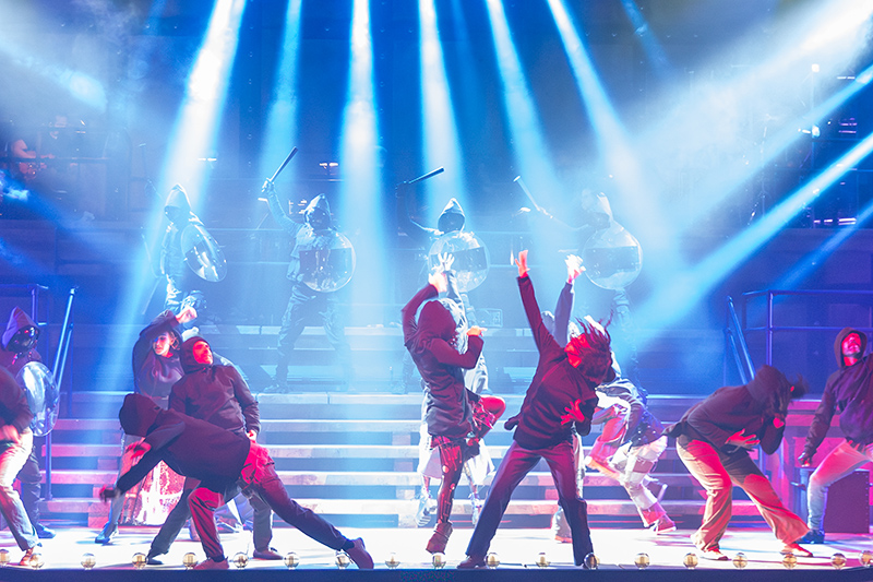 With no script binding the action to Rice’s lyrics, any director tackling the libretto has plenty of latitude in their visual presentation, and here director Allen Cornell employs a time-hopping array of costumes, props and settings to give his production lots of new ideas mixed among imagery more traditionally used to tell the story.