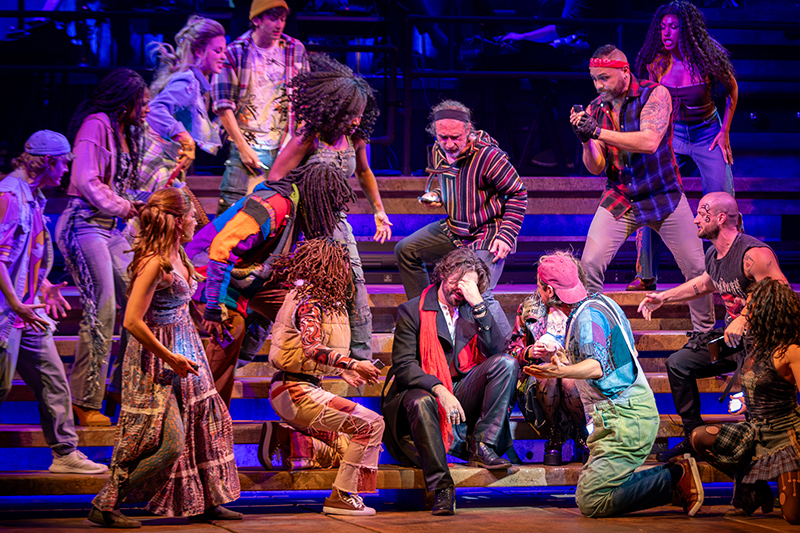 The design elements of the show are outstanding. Kurt Alger’s eclectic costumes run the full gamut, from ’70s-style hippies contemporaneous with the time the show was written, to fashions of today and everything in between.