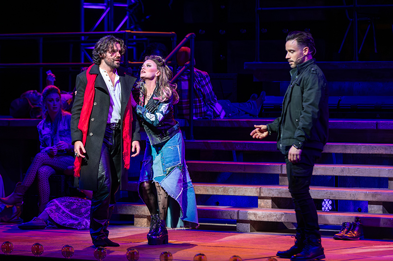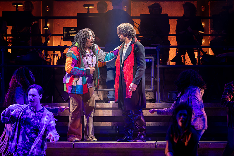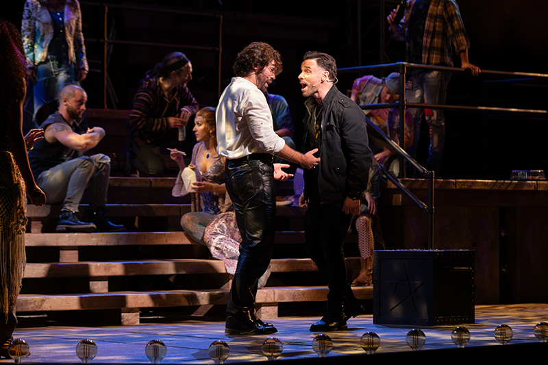 Riverside has cast two powerhouse vocalists, David Toole and Cole Thannisch, respectively, in those roles. These gents were clearly cast to scale the heights of the classic ’70s rock sound baked into the music, with thrilling results. That they also manage the moments of pathos with heartfelt emotion is the key to this production’s success.