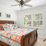 The house is surrounded by lush, mature landscaping and has a wide, brick-paved driveway. A paved path leads to the front porch, the perfect spot to sit and watch friends and neighbors out for their daily walk. There’s even room to park your boat or RV alongside the driveway.