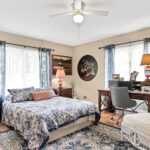 A formal sitting room is situated between the communal spaces and the owner’s suite, making a nice buffer. Kennedy notes that barn doors across the room would extend the already spacious suite to create an intimate sitting room or office with a private entrance.