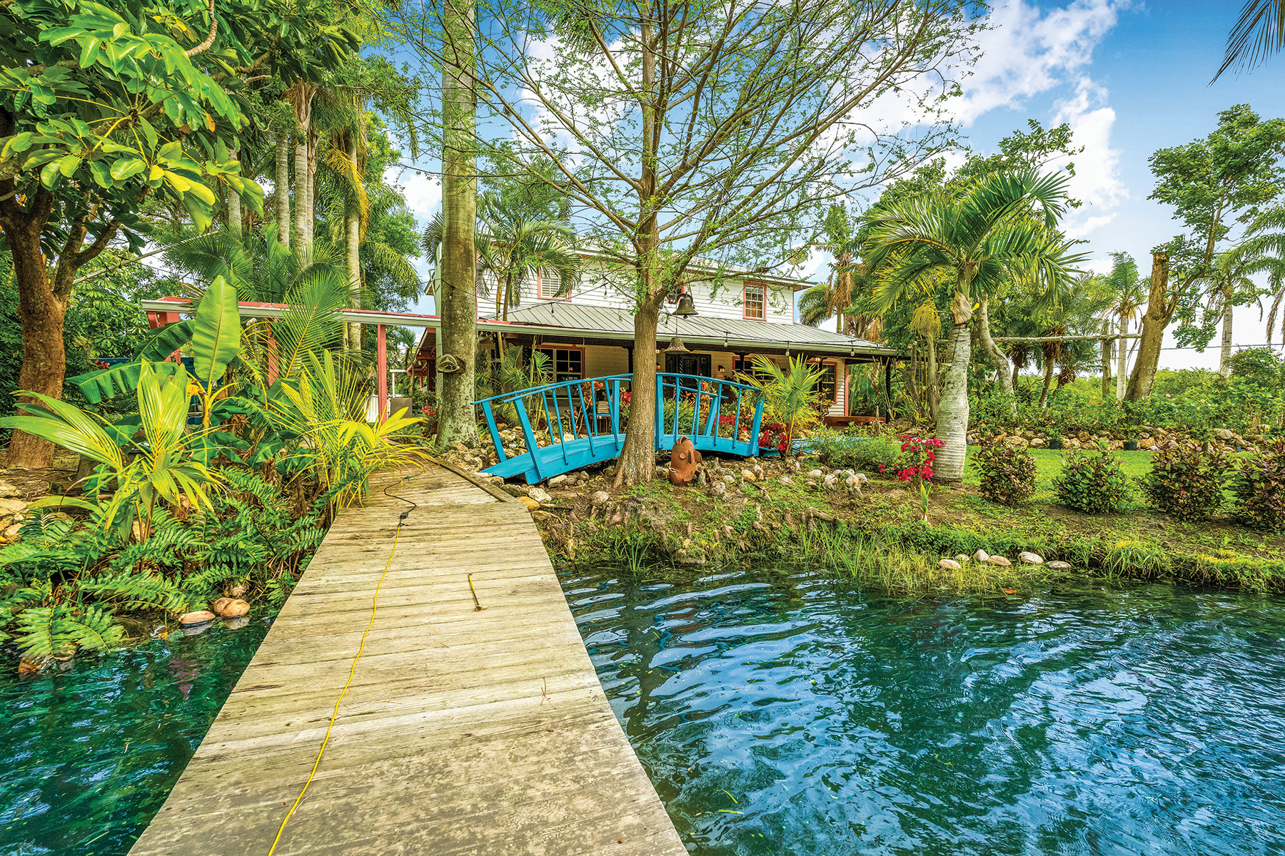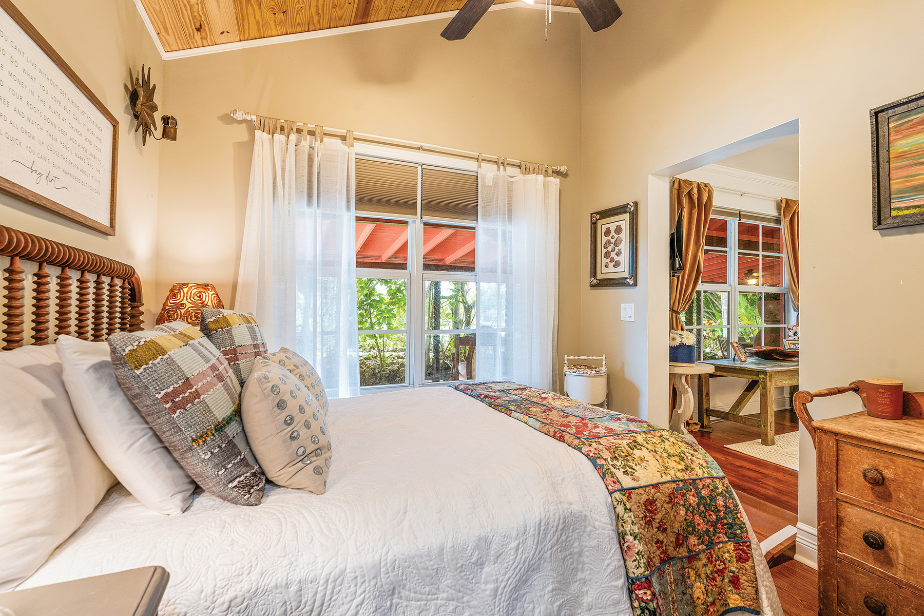 A 20,000-gallon cistern collects rainwater to supply the home itself and the back porch sink. An artesian well supplies water for hoses outside, and there is a reverse osmosis water purifying unit in the kitchen.