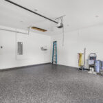 Adjacent to the laundry is access to a large, two-car garage with a great-looking epoxy floor. Also in the garage are the tankless electric water heater and one of the two attic pull-downs leading to storage space with room to walk upright beneath the rafters.