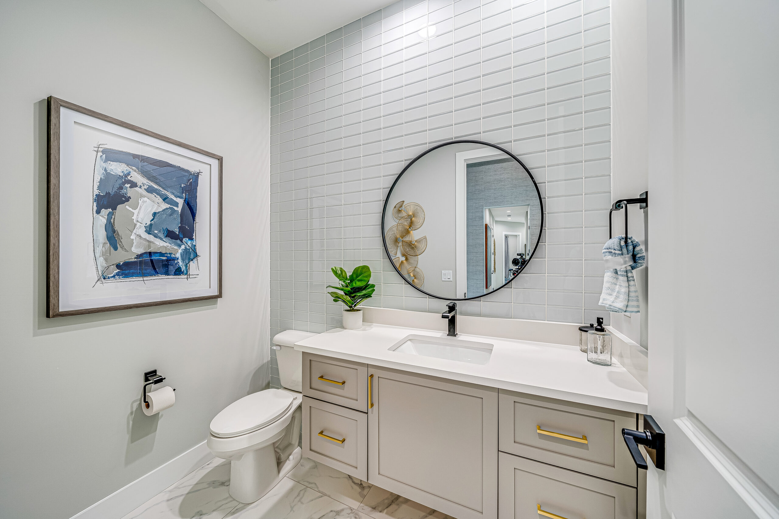 Inside, the home blends comfort with style, beginning the moment you enter through the frosted-paned, double black doors that allow diffused light to filter through the home without sacrificing privacy.