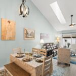 Crowning the airy interior are beautiful cathedral and tray ceilings.