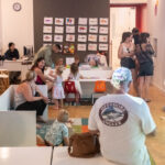 “We wanted to do shirts, but there are too many sizes. Bandannas can be worn as a scarf or a head covering; we even had people saying they were making them for their dog,” said Sophia Strazinsky, VBMA art educator. She added that the project had been so popular they ran out of bandannas before noon and needed to switch to paper.