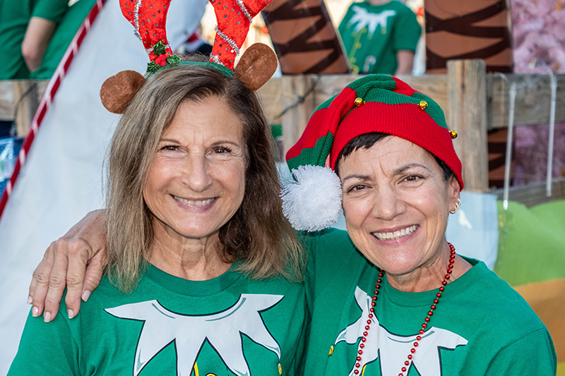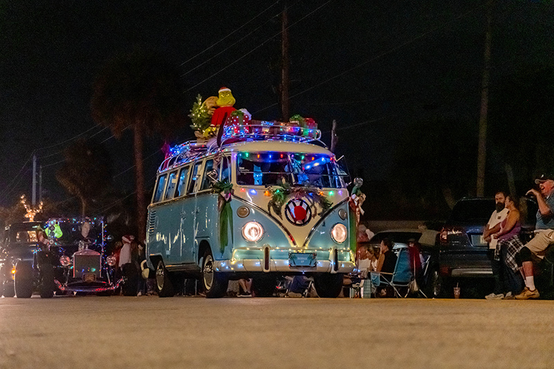 The whole area was alight with holiday magic as 91 lighted floats made their way down the street, adorned with everything from a Florida-centric sleigh-riding sailfish to manatees and flamingoes, along with more traditional players such as a not so grouchy Grinch. They traveled from Flamevine to Live Oak, as holiday music blared and bubbles and “snow” covered the crowd.