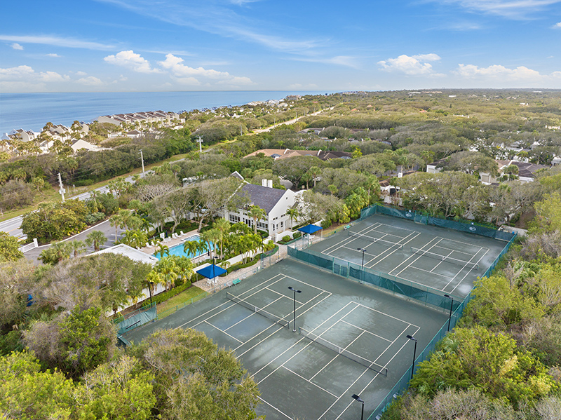 From 8427 Sabal Palm Court, it’s a short stroll to the clubhouse and pool through a cast-iron gate. Baytree is a guard-gated, pet-friendly, north island neighborhood with oceanfront condos, villas and courtyard homes on both sides of A1A. The community offers numerous amenities, including granted beach access, four heated pools, a fitness center and four Har-Tru tennis courts.