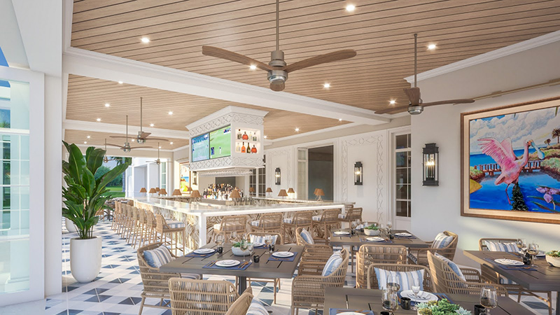 The design was inspired by a similar setup at Orchid Island Golf & Beach Club, according to Gibson. That club recently expanded the dining space at its golf clubhouse and opened it up to take in a gorgeous lake view.